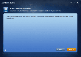The second step, AOMEI PE Builder will detect your system weather supporting create the bootable media or not. For most computers, it is no problem. Click “Next” again.