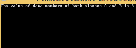 std::cout<<"The value of data members of both classes A and B is "<<c<< std::endl;
